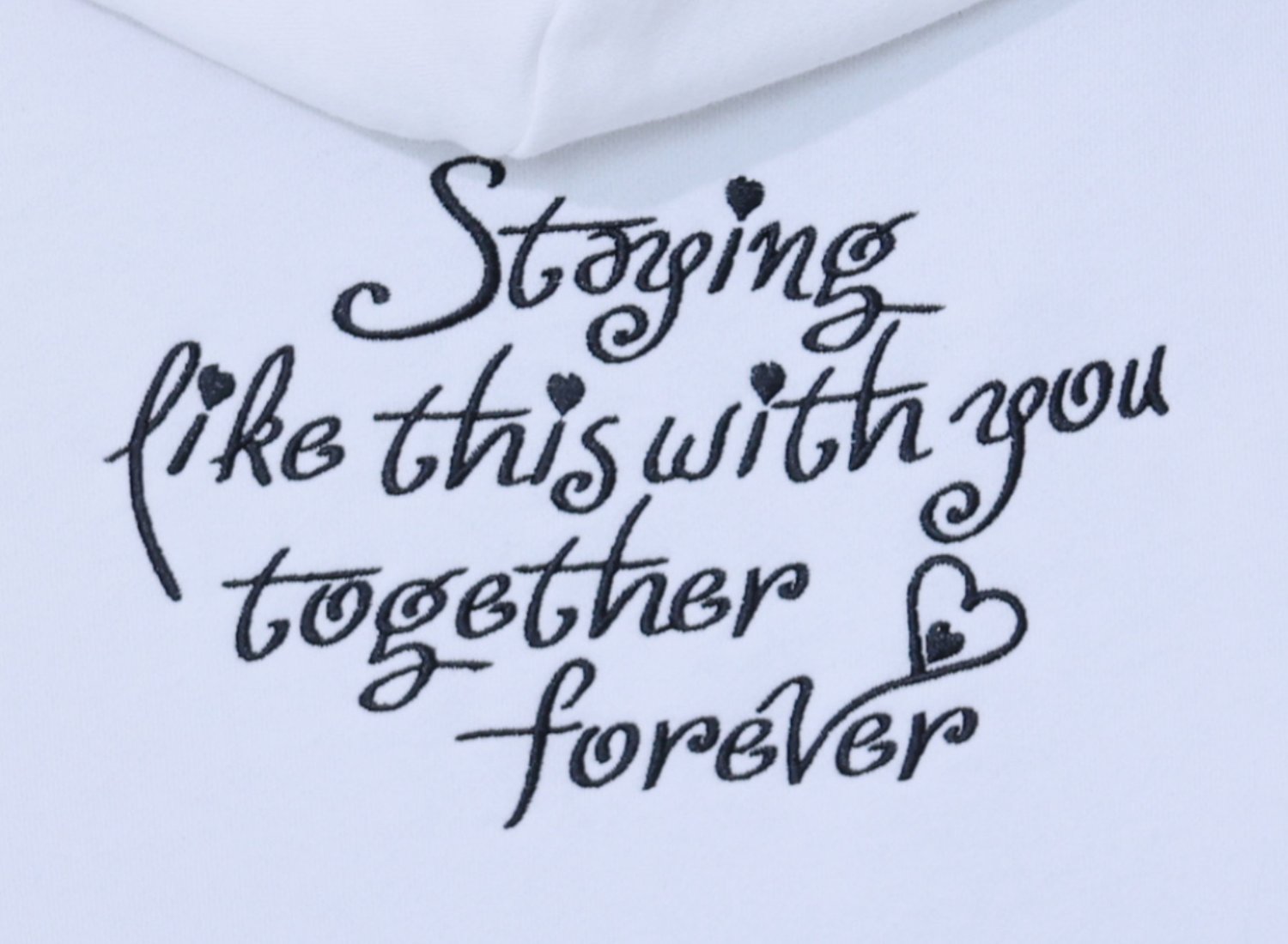 胸元と背中にバイカラーのコラボオリジナル刺繍を施しました。ハートモチーフがポイントです。