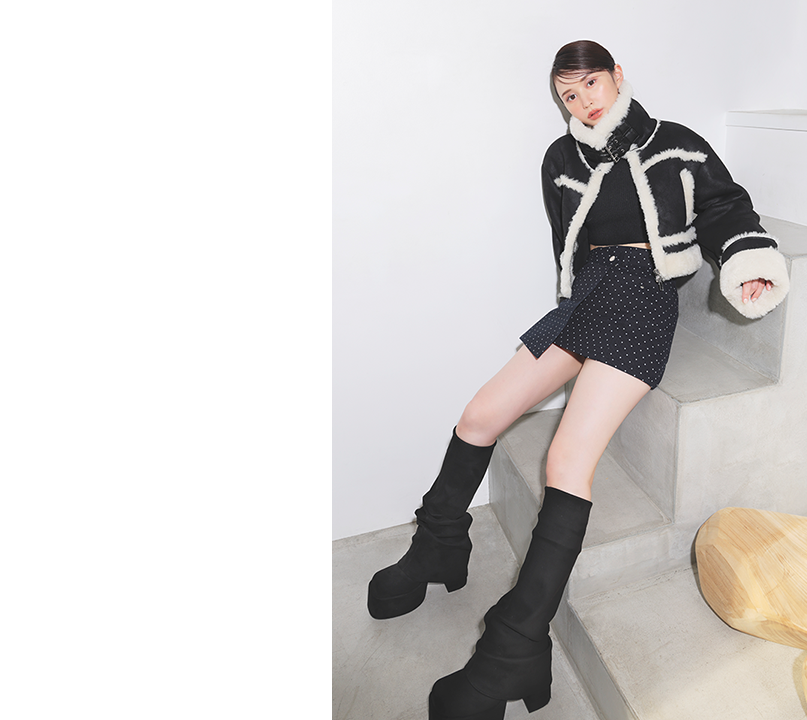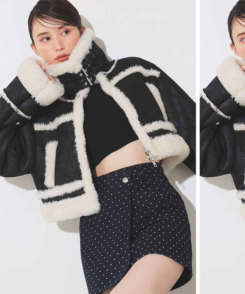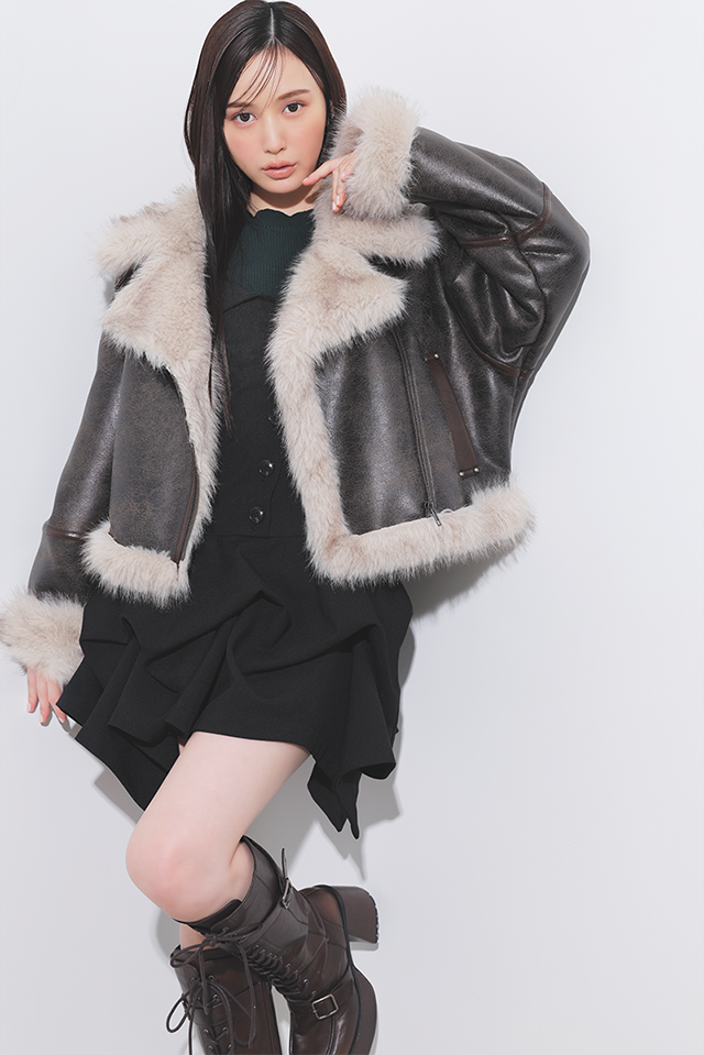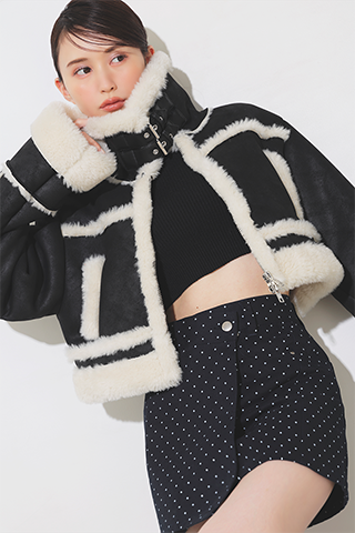 上だけ閉めたムートンに肌見せで抜け感を作れば