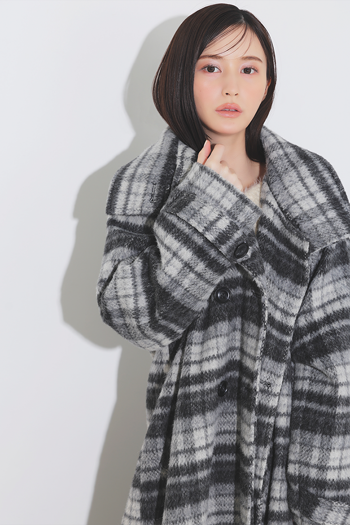 大きなチェック柄とゆったりシルエットがポイントの