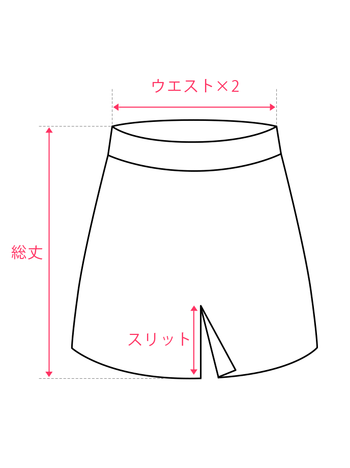 タックやプリーツ等の伸縮する部位は伸ばさない状態で計測しています。