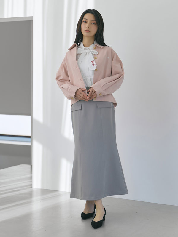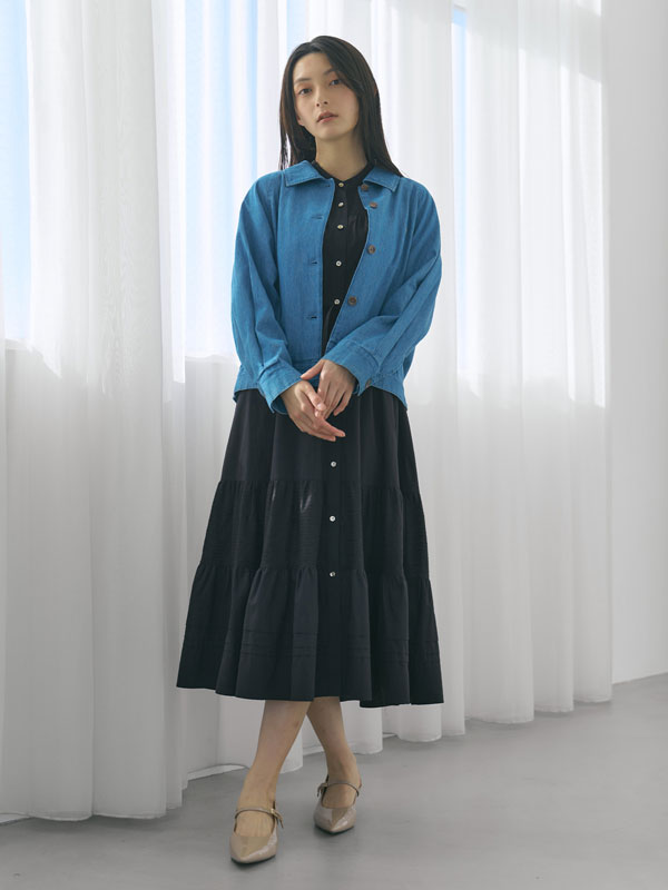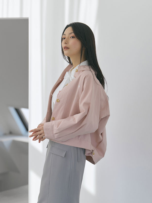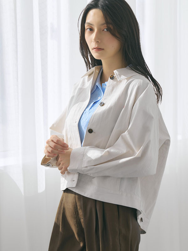 丸みを帯びたボリュームシルエットが女性らしく、後ろ裾のアジャストボタンでフォルムチェンジが可能。裾を留めればコクーンに、外せばゆったりとしたAラインに変化し、スタイリングに合わせてシルエットを楽しめます。